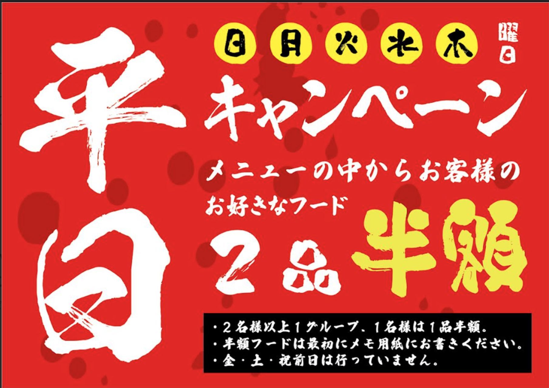 17:00-翌1:00 フードラストオーダー0:00 ドリンクラストオーダー0:30 年中無休